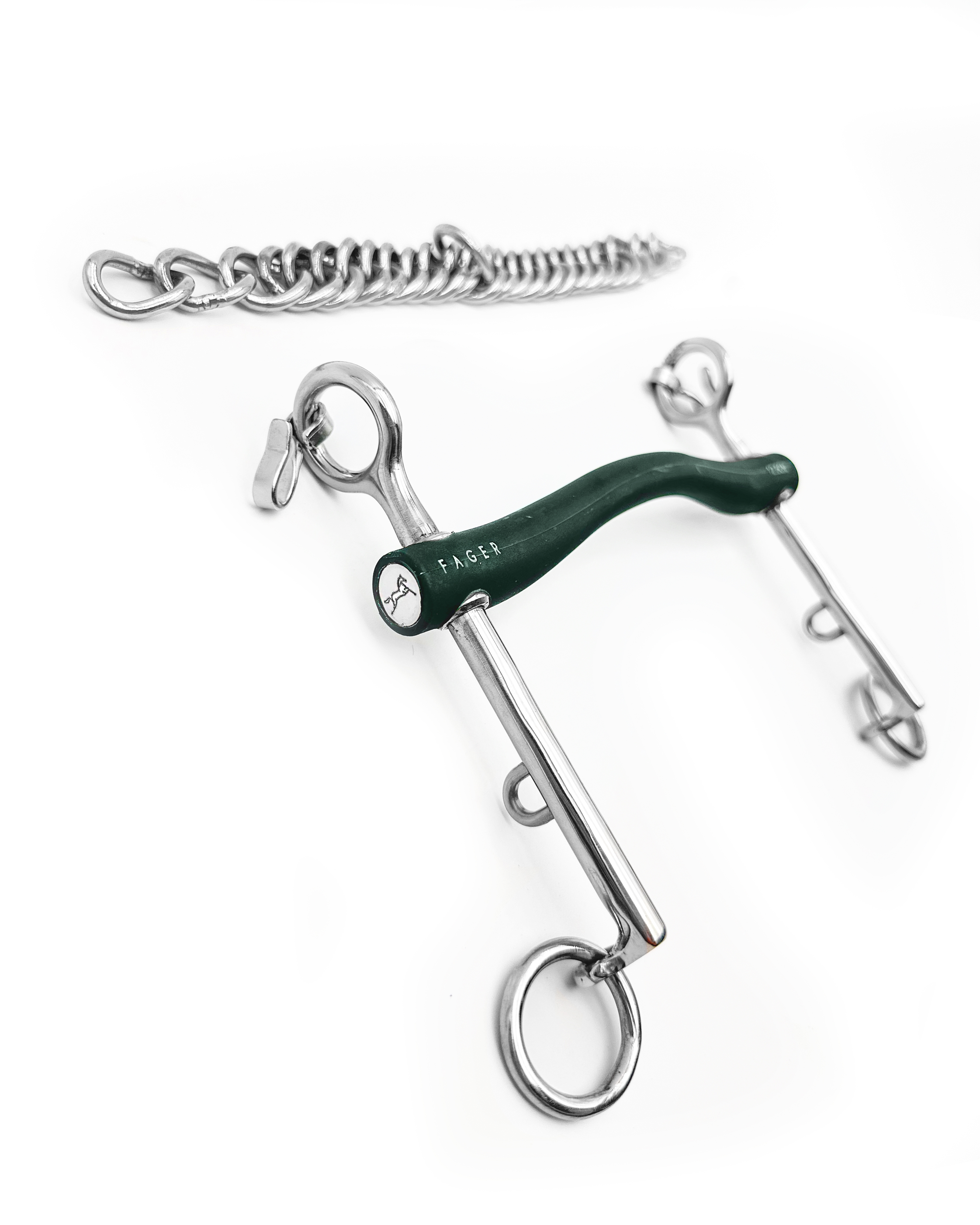 Мундштук FAGER Andrea Weymouth из жёсткой резины создан для всадников, которым важны точность управления, стабильный контакт и комфорт лошади при работе на двойной уздечке. Благодаря продуманной форме и качественным материалам, этот мундштук обеспечивает чёткие, но мягко передаваемые сигналы.