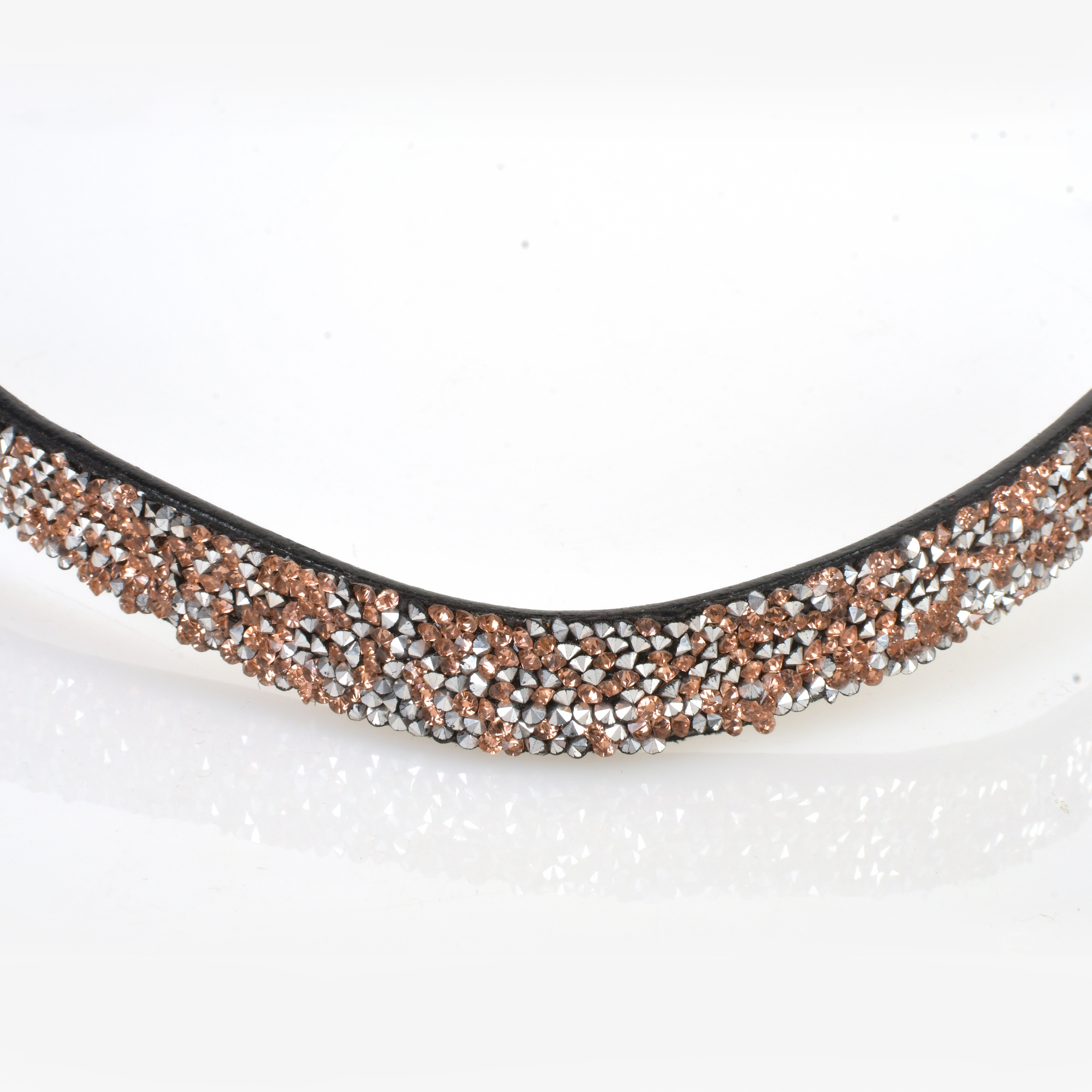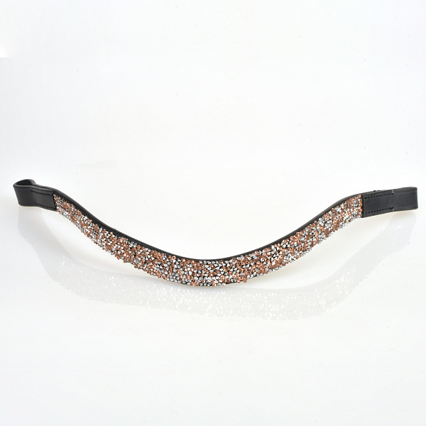 Налобник со стразами россыпью, узкий, бронза чёрный