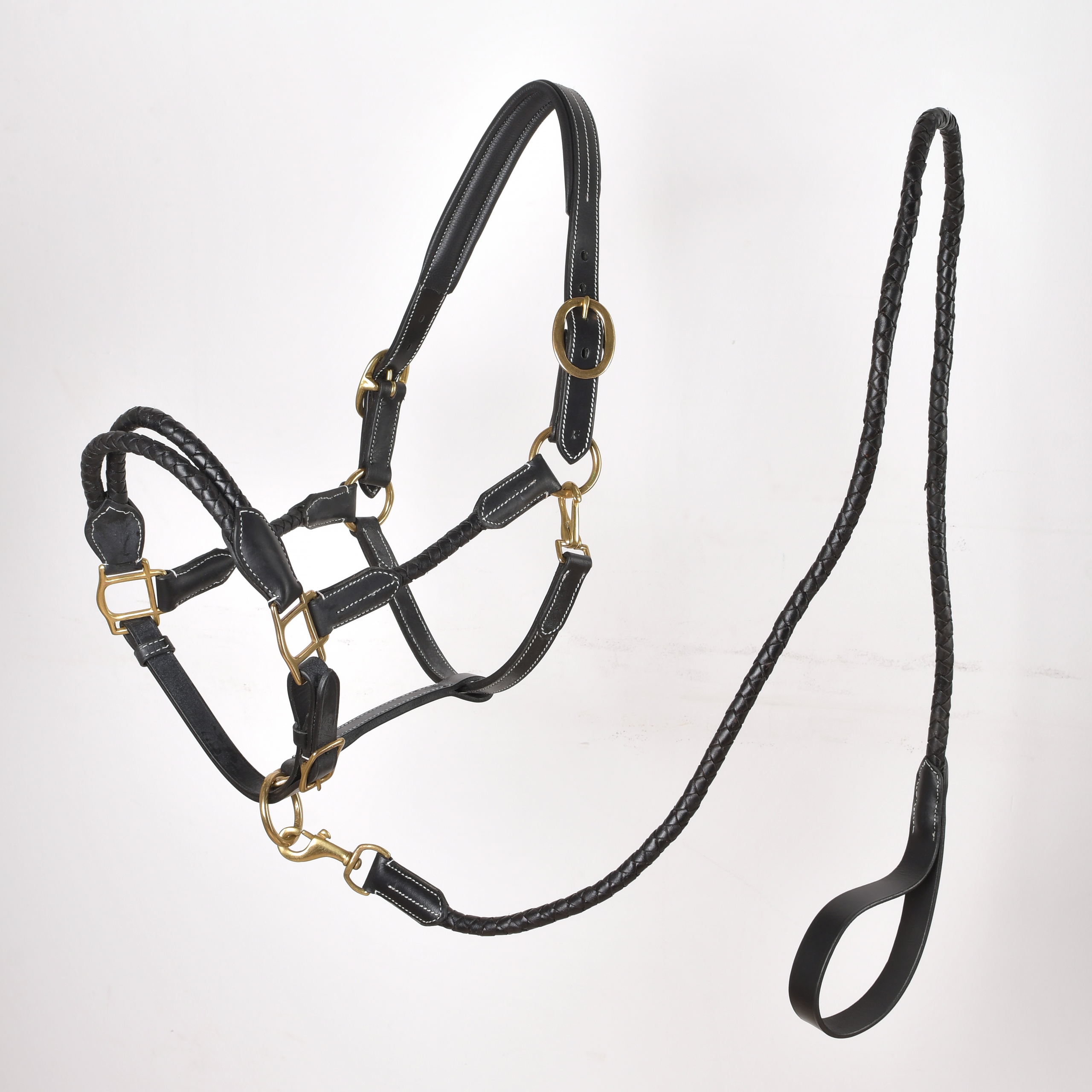 Недоуздок кожаный плетеный с чомбуром Evoke чёрный