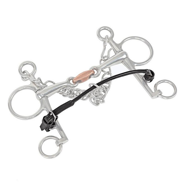 Обеспечивает оптимальное действие мундштучной цепи и предотвращает слишком близкое прилегание нижних щёк к углам рта лошади.