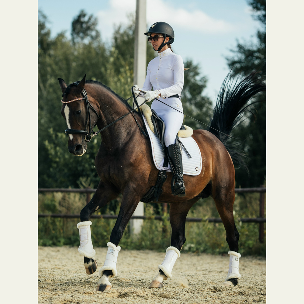 Модель AIR имеет внутреннюю хлопковую подкладку (вафля), которая впитывает пот лошади и выводит его через внешнюю mesh-ткань, предотвращая перегрев. Дышащий вальтрап оптимален для любого времени года и для любой дисциплины, ведь перегрев оказывает губительное влияние на здоровье мышц.