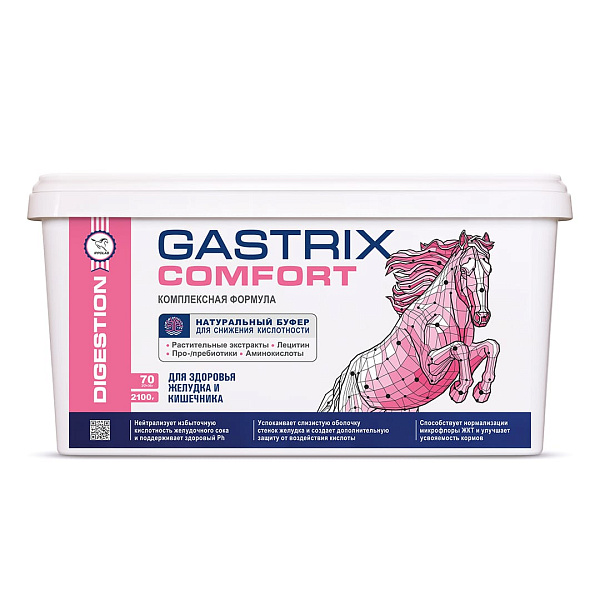Рекомендуемое количество Gastrix Comfort следует смешать с обычным зерновым или дополнительным рационом питания лошади и поровну разделить между кормлениями.