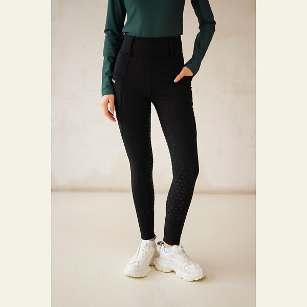 Модель оснащена полной силиконовой леей для надежного сцепления с седлом, удобными карманами по бокам