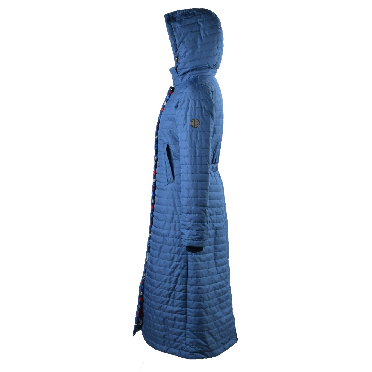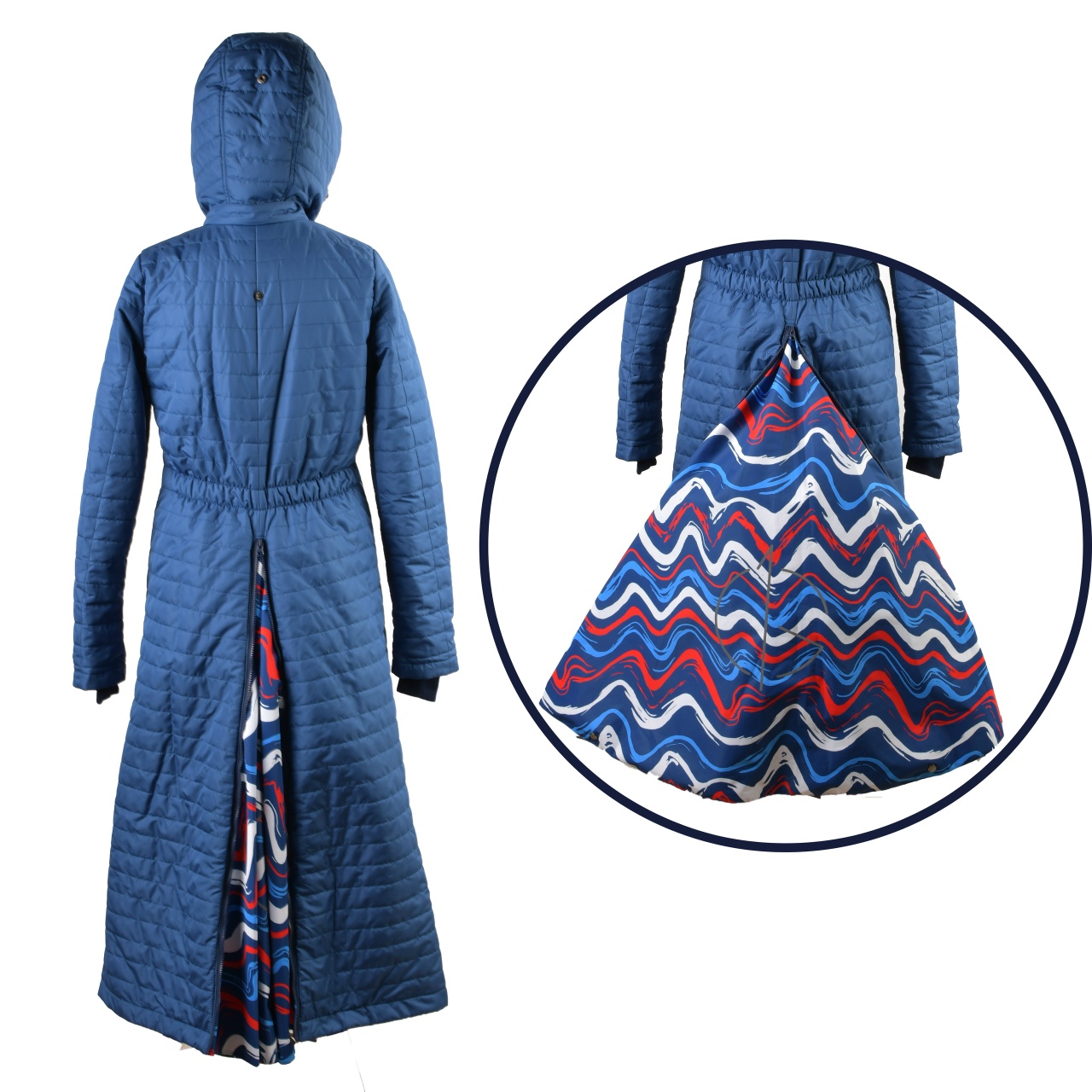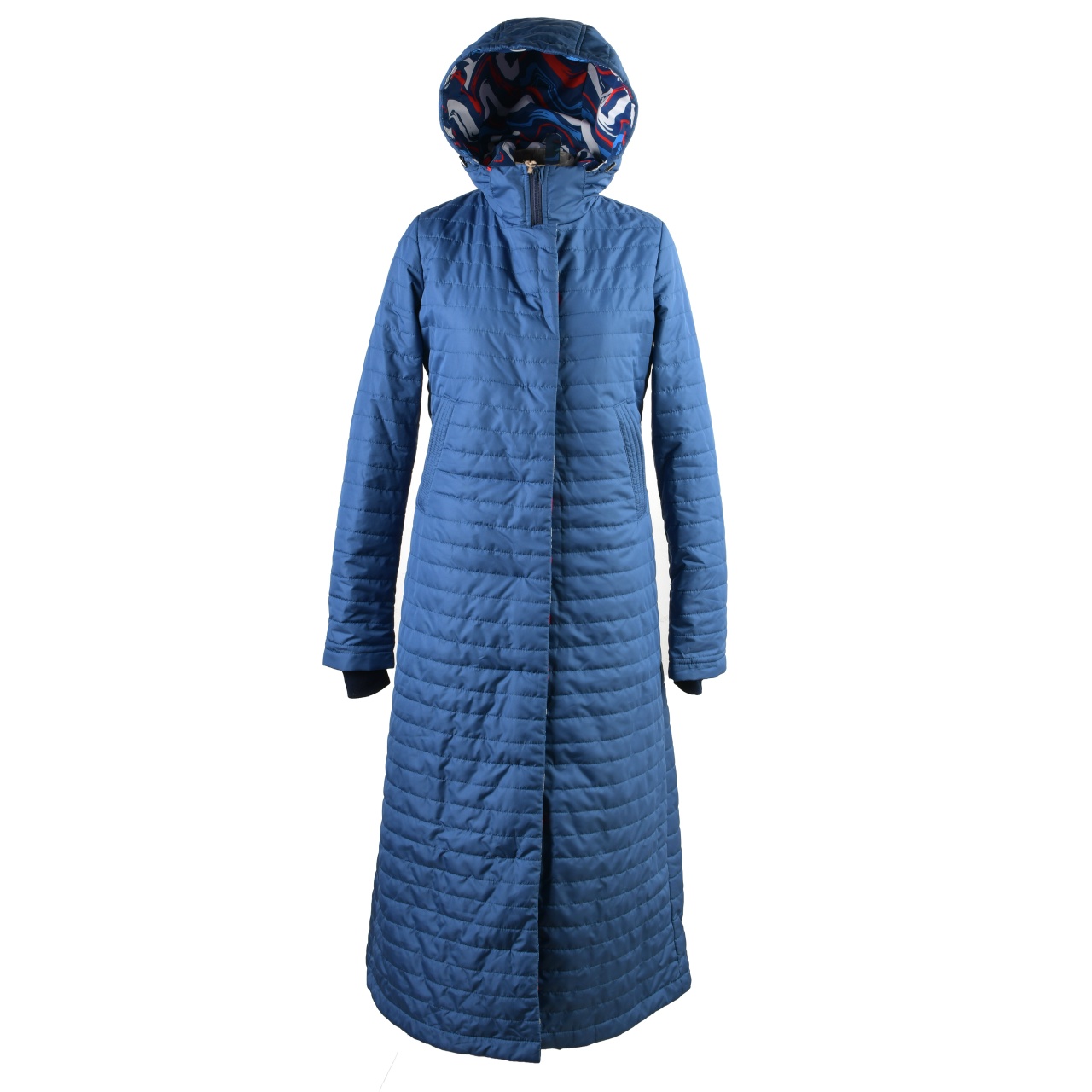 Пальто длинное с цветными вставками 135см синий